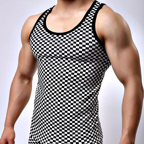 Черно-белая мужская майка в клетку
