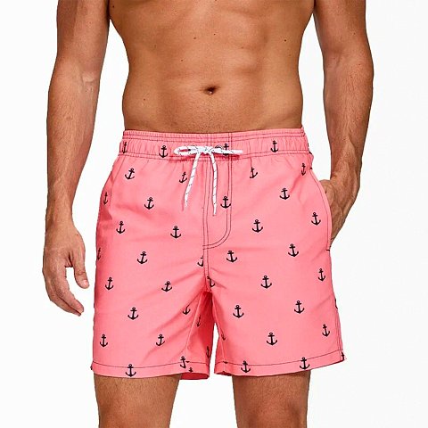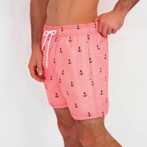 Розовые мужские пляжные шорты с принтом в виде якорей