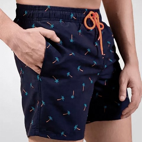 Темно-синие мужские пляжные шорты с принтом в виде пальм